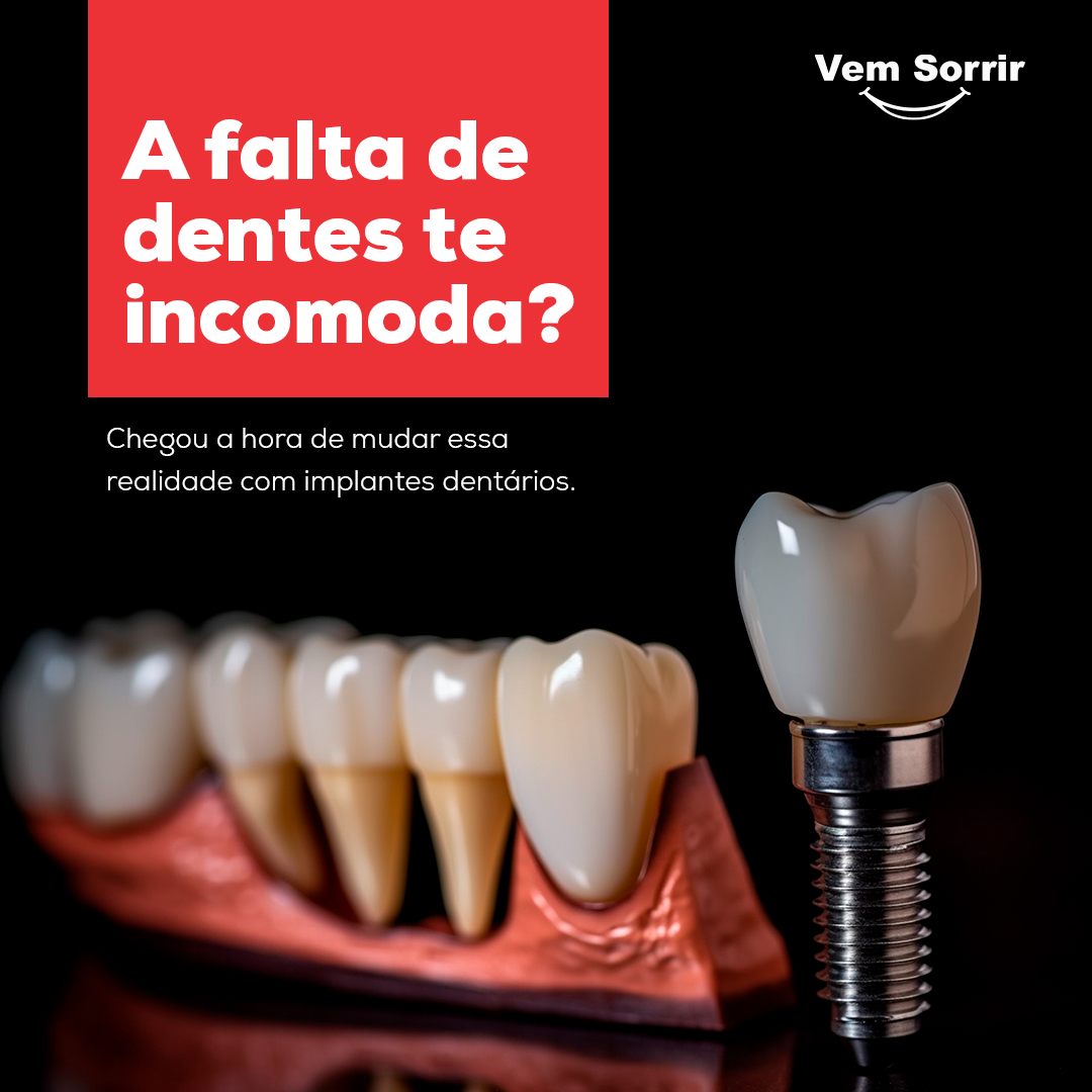 Implantes dentários são pinos de titânio inseridos no osso da mandíbula ou maxila para substituir a raiz de dentes perdidos. Eles servem como base para coroas, pontes ou próteses, proporcionando estética, estabilidade e função semelhantes aos dentes naturais.